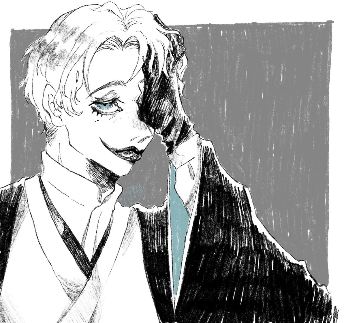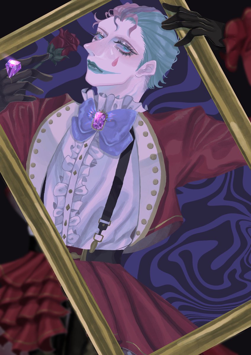 キリコ様も道化風情着て欲しい🥀 絶対お似合いになられるので (⚠︎髪型、衣装捏造&変更) #スーパーマックスガッツリロイヤル鹿鳴館キリコファファンファンファファンファンファン素晴らしキラキラ制作時間結構かかりましたんで褒めてくださいファンアート