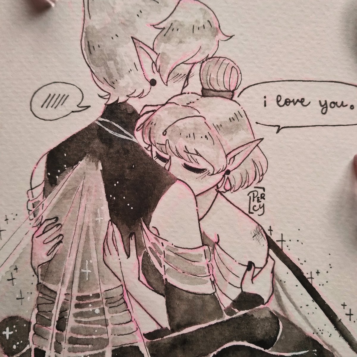 [ I love you.. ] - - Some Luxorin bc their lore is very toxic and i love them so much I will cry UEUEUUE - - #Dndtober #dnd #dnd5e #dndnpc #dungeonsanddragons #commissionsopen #watercolor