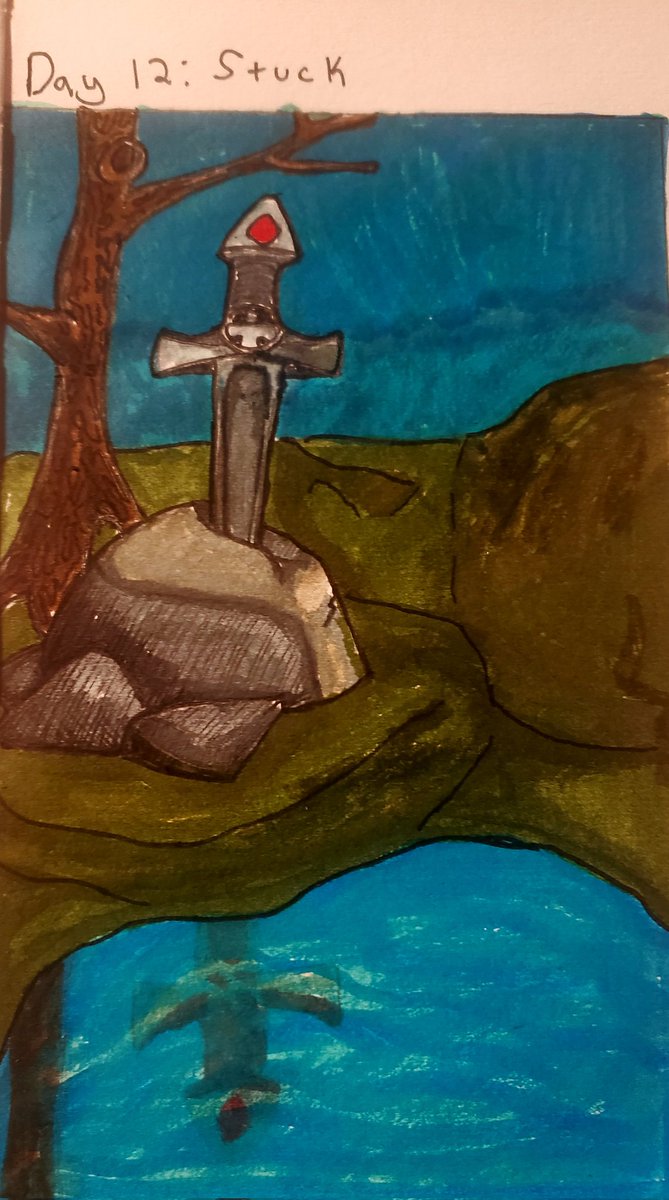 0 2 #inktober2021 #stuck #excalibur #kingarthur #illustration The sword in the stone, only he who is worthy may remove it #Arteza Fineliners and Brush tip markers 21/10/14 06:52