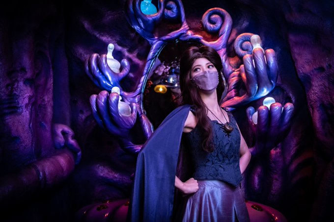 肌寒い時期でもヒレ仮装しやすいように、ケープを作りました!(ほぼうちのフェアリーゴットマザー((母))製←) グリで会えた旧ケープのイメージ💕 本家にも袖有りや無し、いろんなバージョンがあるのだけど、袖無しを製作! 3枚目の素敵写真はみなってぃに借りました♡ 📷️ @fuj1photo #Dハロ仮装2022