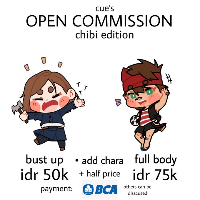 OPEN COMMISSION !! i'm on very low cash 🥲💔 and need money (asap i guess 💔💔) Please read ToS closely before order! thanksies! ❤️ #ArtistOfIndonesia #artidn #opencommission #commissionopen #illustration #chibi #zonakaryaid @cmsn_ART @CmsnArtist_Id