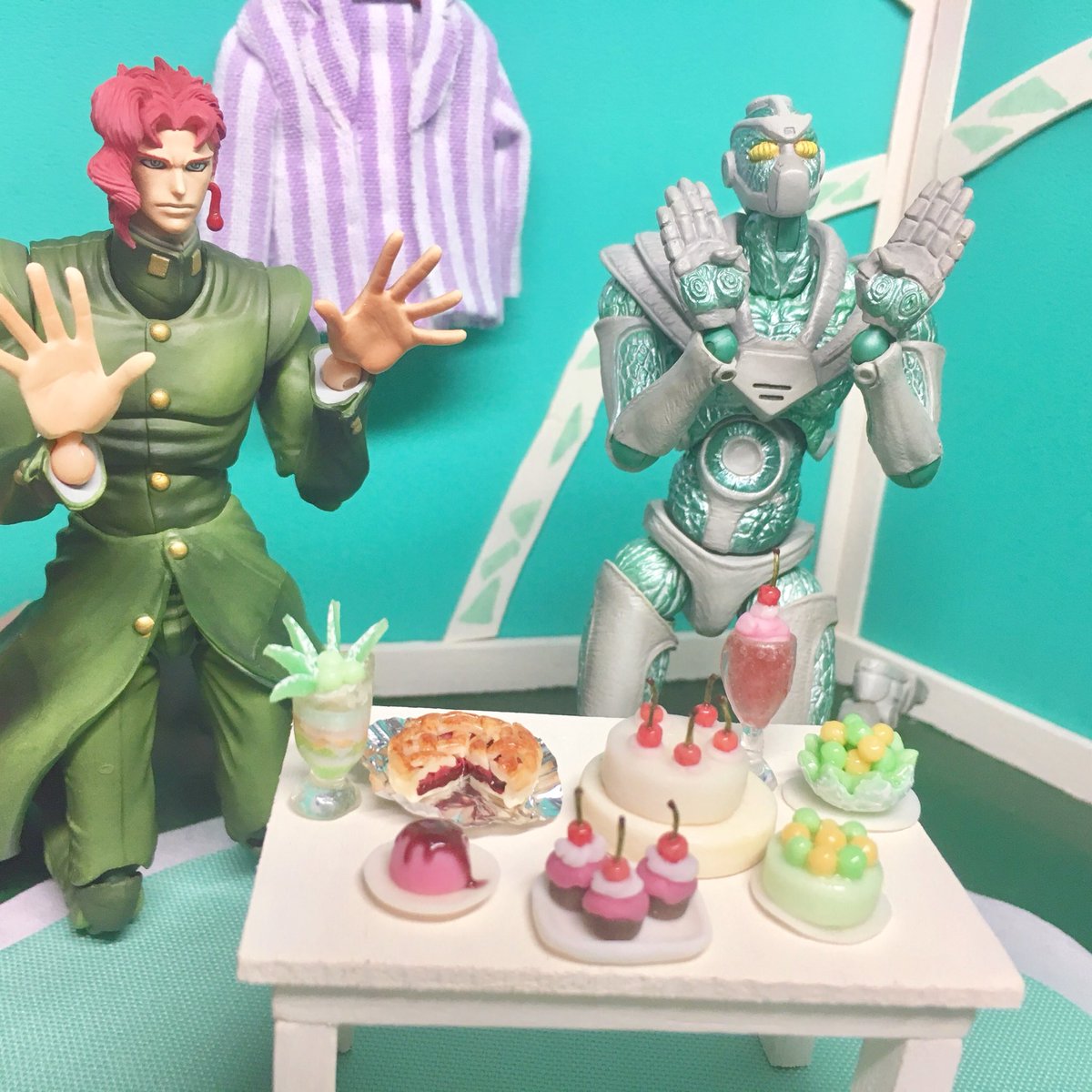 謎に今年気合い入れちゃって1か月間仕事から帰ってきて毎日2時間位制作して推しにプレゼントし続けた日々も終了🎁 推しと星座被りで勝手に喜んでます✨今日から何でもない日です 花京院まみれの1か月間🍒ありがとう💐 #ジョジョの奇妙なドールハウス #花京院典明生誕祭2021 #花京院典明誕生祭2021