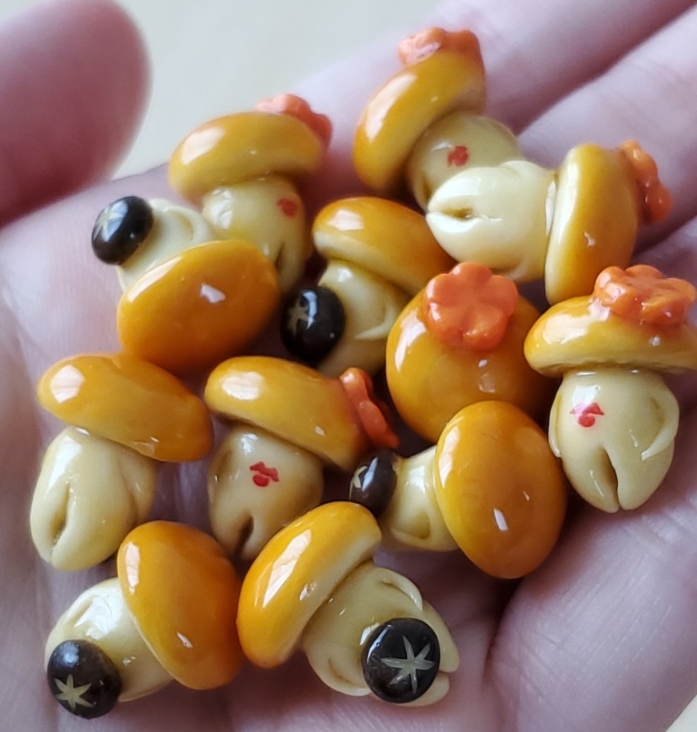 1 5 #これを見た人は塗装前と塗装後を貼れ 乾燥中のなめこ→艶めかしくなったなめこ #ミニチュアフード 23/04/12 11:16