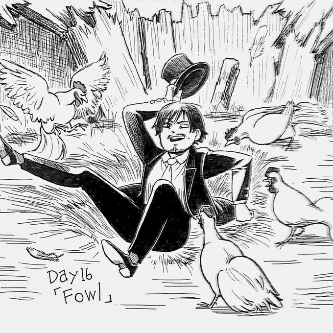 #inktober2022 Day16 「Fowl」 「痛てて…はは、皆さんごきげんよう…」
