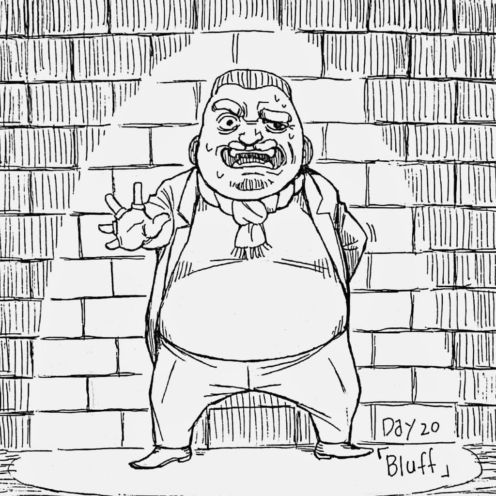 5 68 #inktober2022 Day20 「Bluff」 「待て!ど…どうだ、ワシと組まんか?いくらで雇われたか知らんがその2倍…いや、5倍出そう!」 22/10/21 00:10