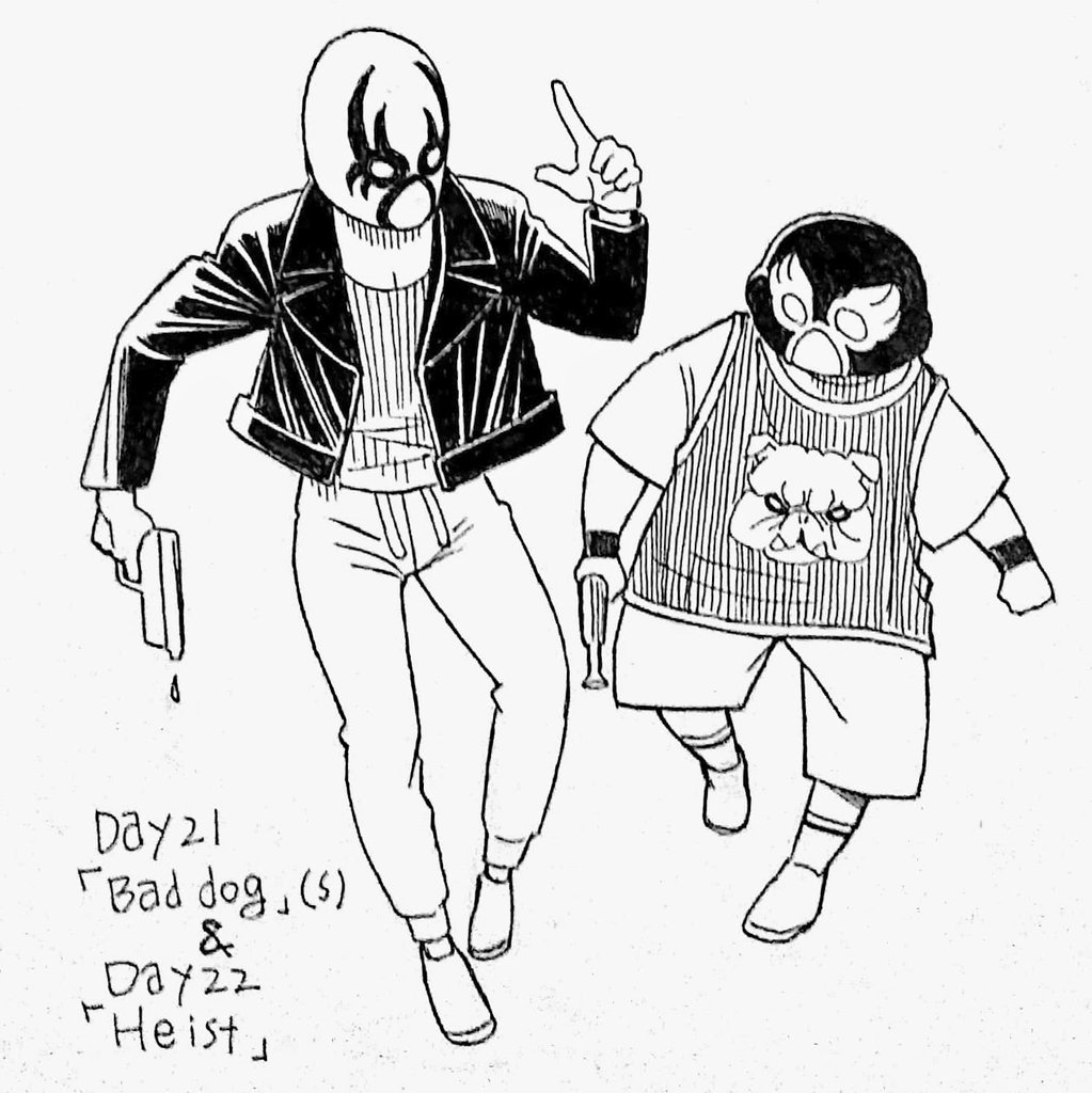 #inktober2022 遅刻した上にお題もひとまとめに…もはや弁解の余地なし🤤 Day21 「Bad dog(s)」 &Day22 「Heist」 しくじるなよ、ルーディ