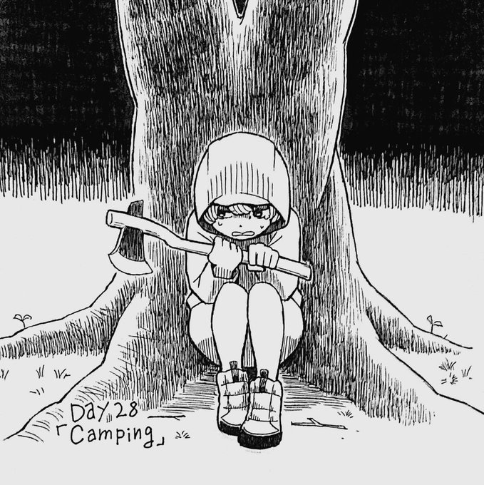 18 181 #inktober Day28「Camping」 「有給消化を兼ねて流行りのひとりキャンプに来ただけなのに、何故こんなことに…」 22/10/29 02:28