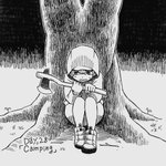 #inktober Day28「Camping」 「有給消化を兼ねて流行りのひとりキャンプに来ただけなのに、何故こんなことに…」
