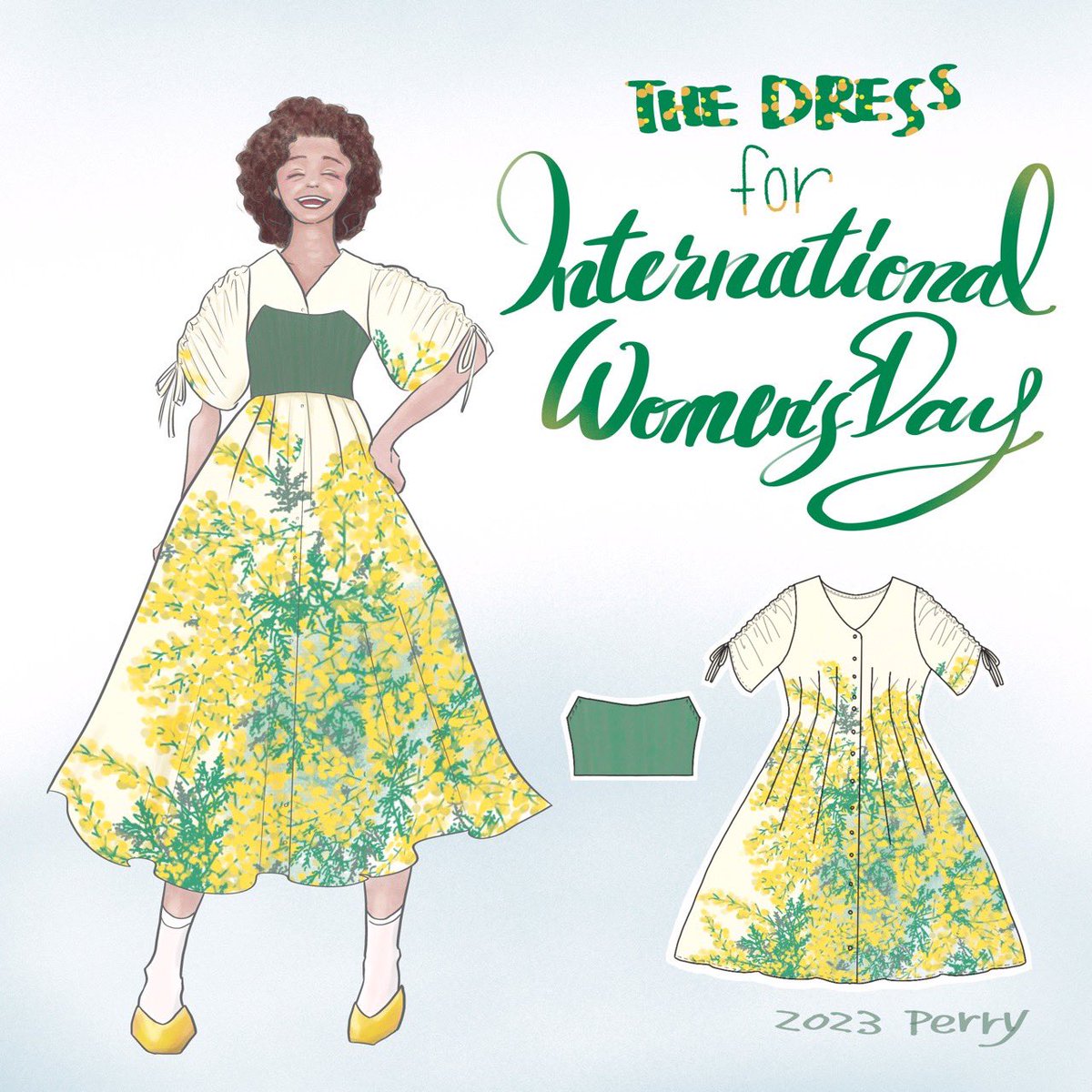 ミモザのワンピースをデザインしました。ニットビスチェとスタイリング。 #ミモザの日 #国際女性デー #イラスト