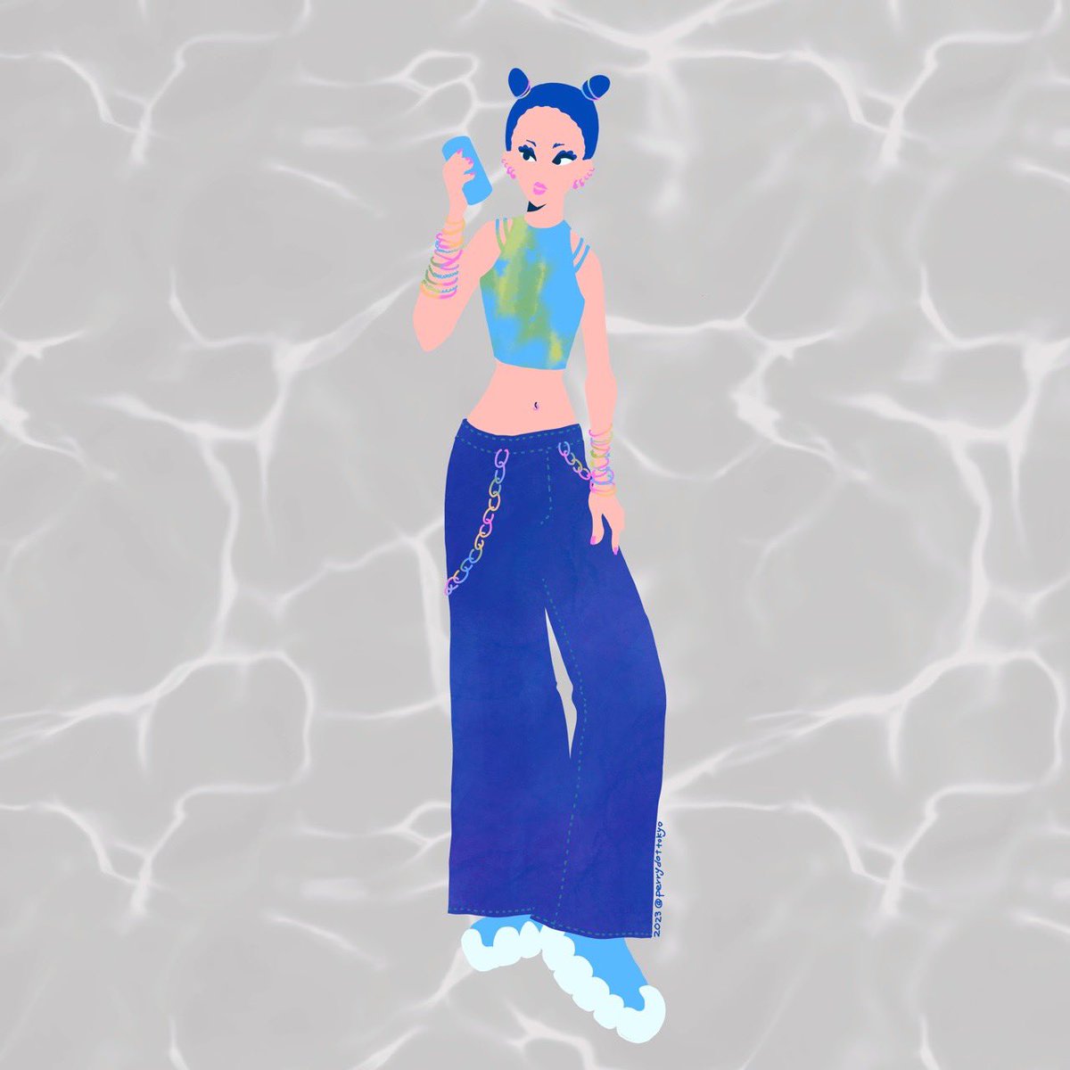 レイバーパンツ女子を描いたよ 自分がリアルに体験した90年代カルチャーがトレンドとして戻ってきてるの、嬉しいような何か複雑な気持ち〜😂 #ファッションイラスト #イラスト