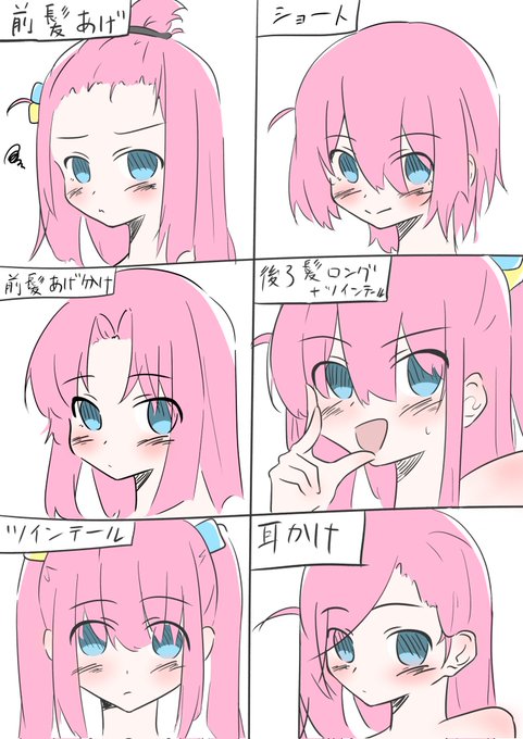 ぼっちちゃんのいろんな髪型を考えてみた。#ぼっち・ざ・ろっく #ぼっちちゃん #イラスト
