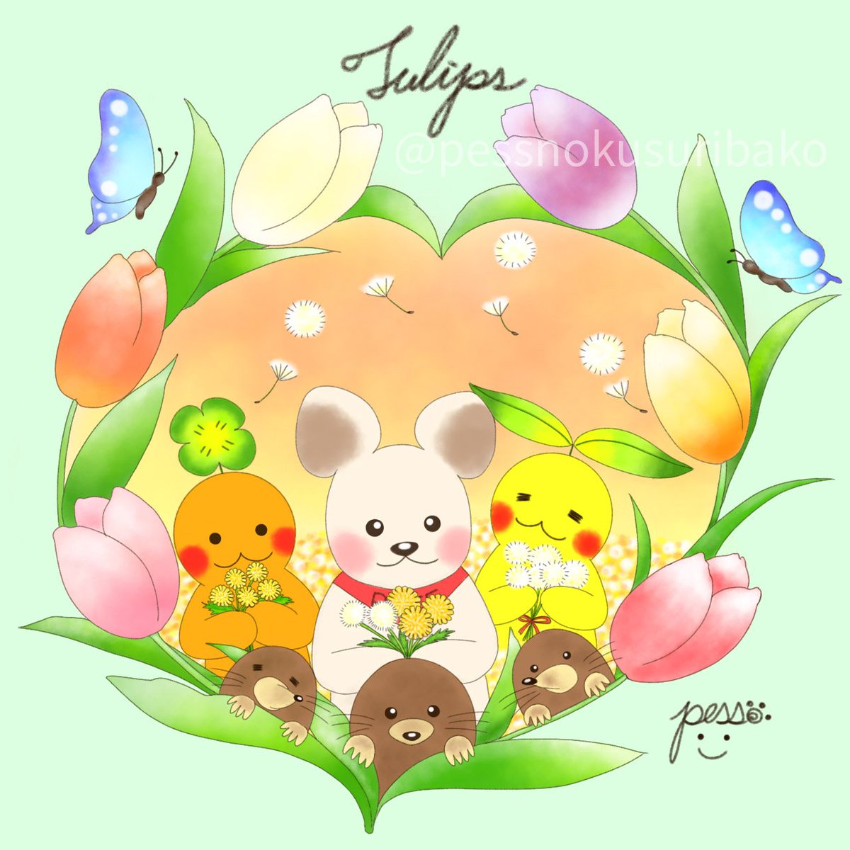 🌷3月のカレンダーイラスト🌷 朝から夕方へ🕊 𓈒 𓂂𓏸 ほわっほわっほわっ❁❀ 春の足跡が聴こえてきたね🐕🐾🐾 チューリップは、お好きですか?🌷🦋 #春のお花の作品展 #絵描きさんと繋がりたい #私の絵柄が好みって人にフォローされたい