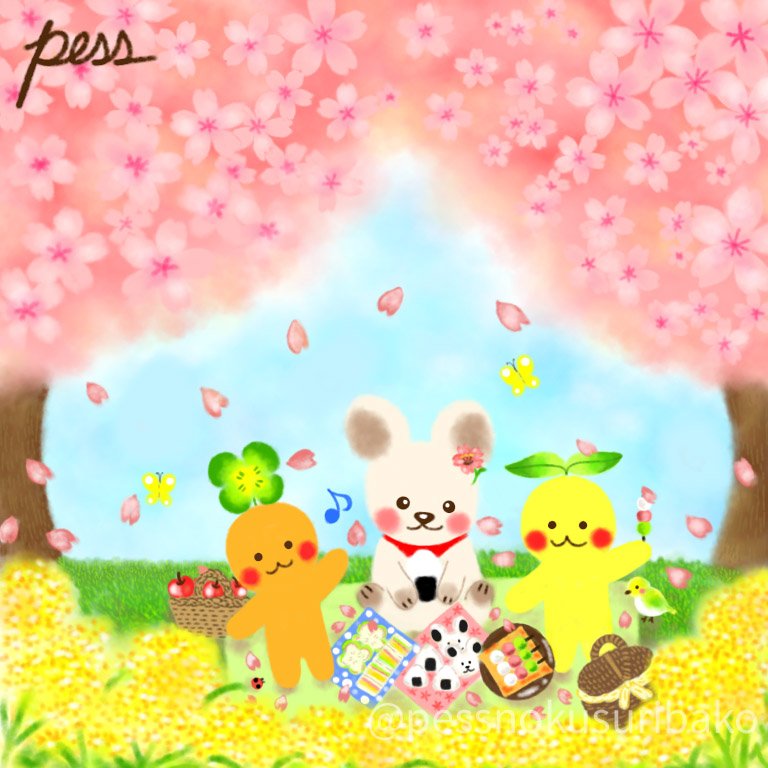 みんなで楽しくお花見🐕🌸✨ サンドイッチ🥪お花見団子🍡 おにぎり🍙りんご🍎 春は気分がウキウキするね🎶 #桜 #イラスト #絵描きさんと繋がりたい #過去絵を投げて絵を描いた気になろうキャンペーン