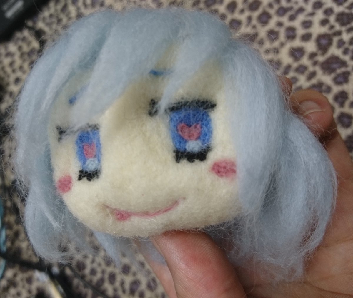 せっかくだし、以前作ってた羊毛の郁子さん(顔だけ)┐(´∀`)┌ #いろはのアトリエ #かきたし