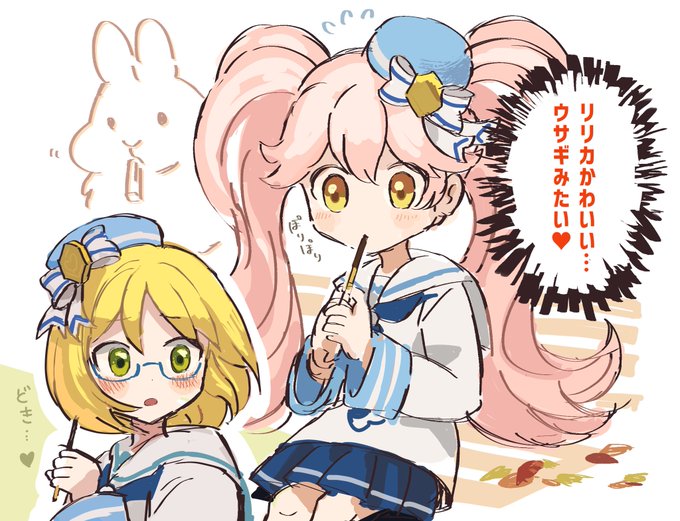 81 346 #コンパスお絵描き 遅刻したー😇 ポッキーの日ルルリリらくがき!❤🧡 22/11/12 01:27