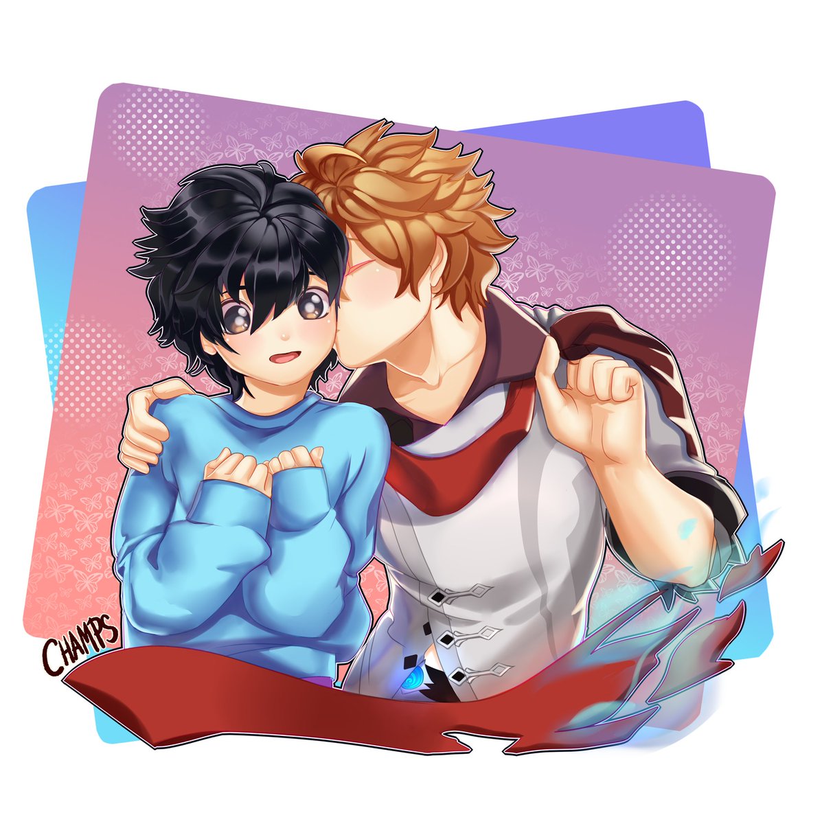 I get commissioned a lot of tartaglia xD, this time it was a selfinsert of the customer with him #原神 #genshinimpactfanart #genshinimpact
