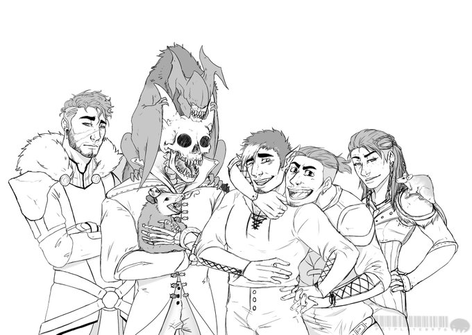 Huge #commission for @December_Lion with some other delightful fellows in the mix! ✨Darius, Rakan, Alister, and Tyrik!✨ 🐺🪄 -- #TFTuesday #TFEveryday #WerewolfWednesday #artistontwitter #digitalart