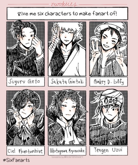 Finally Done ! ✨เสร็จแย้วฮะ สุดยอดมาก ! ขอบคุณทุกคนเลยฮะที่มาเล่นด้วยกัน 💞🌟หวังว่าจะชอบกันนะคะ อุแง >< #ชาเลนจ์กับโฮมุ้ #sixfanarts #sixfanartschallenge #มาอวดโฮมุ้ #geto #gintoki #luffy #ciel #akutagawa #uzui #sasuke