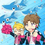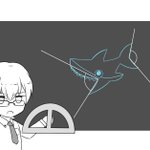 「がぶがぶシャークくんの口が開く角度が知りたい…?では実際に測ってみよう。」 小学生向けの番組か何かでがぶがぶシャークくんと一緒に算数の授業を教える硲道夫さんというシチュエーションで参加させて頂きました。企画ありがとうございます!動画も集合絵も凄い! twitter.com/wabolegekou/st…