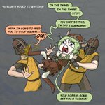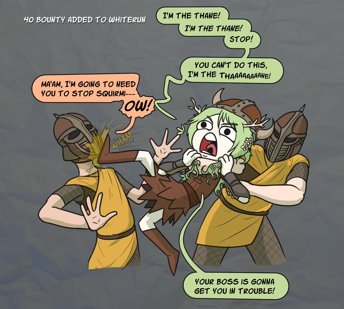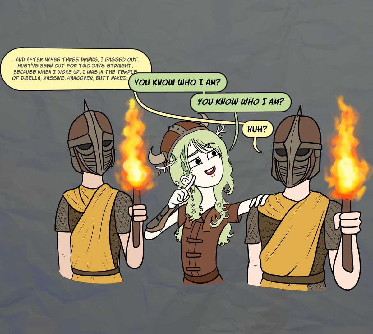 I've watched this scene from Fauna's first Skyrim stream play on repeat like 18 times today. #FineFaunart I may have taken creative liberties with the guard dialogue, because the original was just "Hyargh!" on repeat.