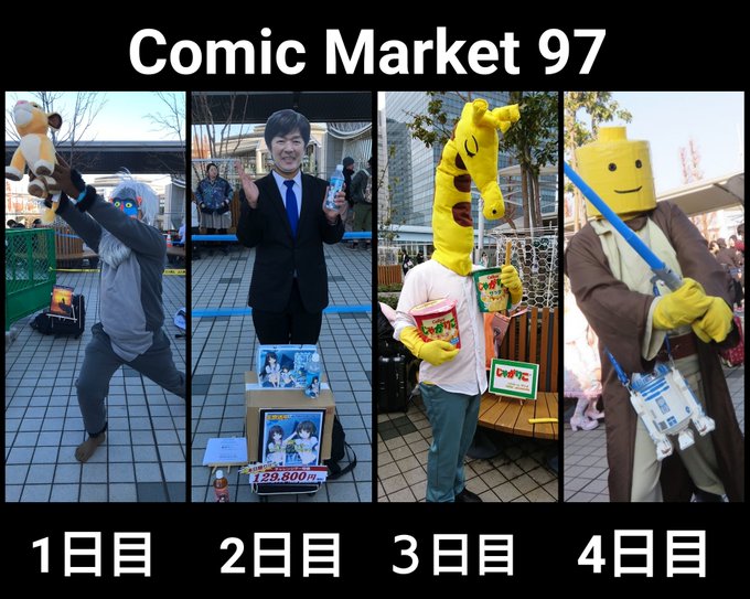 1 6 今のところライオンキングとジャパネットのコスプレで回しました。明日はうちのエースを出します。 #C97 #c97コスプレ 19/12/29 15:13