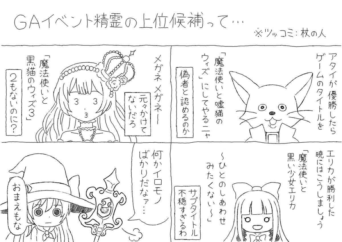 #作画カロリーの低い作品を上げようぜ 低カロリー(でもよいという環境)は健康によい… 1枚目はイベント精霊部門が登場したときに描いたものでしたが、本当にタイトルがアレになってびびった思い出…