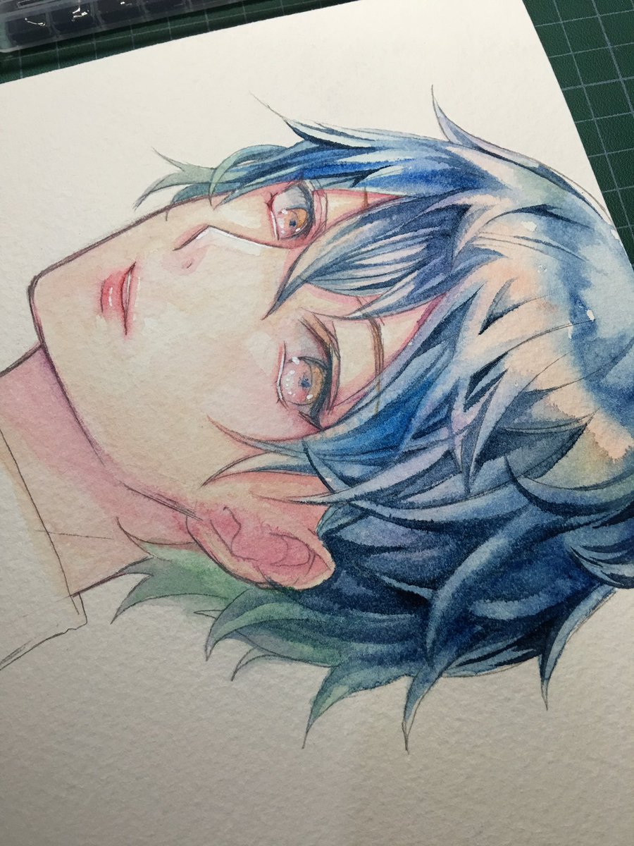 我很少畫漂亮類型的男生🤔️ 覺得那種感覺不好掌握( #絵スコート #絵クロマンサー #watercolor