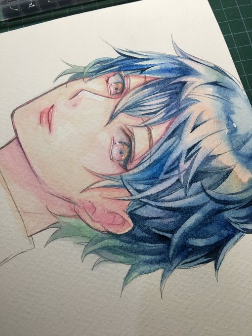 0 1 我很少畫漂亮類型的男生🤔️ 覺得那種感覺不好掌握( #絵スコート #絵クロマンサー #watercolor 23/07/14 00:09
