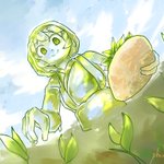 #スライム娘版深夜の真剣お絵描き60分一本勝負 お題:「フルーツ」 ※遅刻参加 グレープフルーツです。 正確にはグレープフルーツジュースのすらいむちゃんです。ただの果汁と侮るなかれ。甘みと苦みと酸味のトリプルアタックでたちまち虜になってしまいます! …本当に強いんです、この子。色々と。