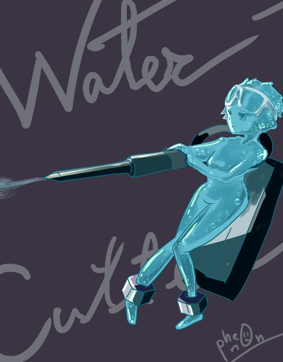 #スライム娘版深夜の真剣お絵描き60分1本勝負 お題:硬質パーツ(60min) 時間外参加です。 町工場で活躍するウォーターカッターちゃん。 その精緻な腕さばきは、鉄筋コンクリート、ガラス、鉄鋼などから、宝石、ダイヤモンドまでも自由自在に加工します。どんな細部もなんのその。