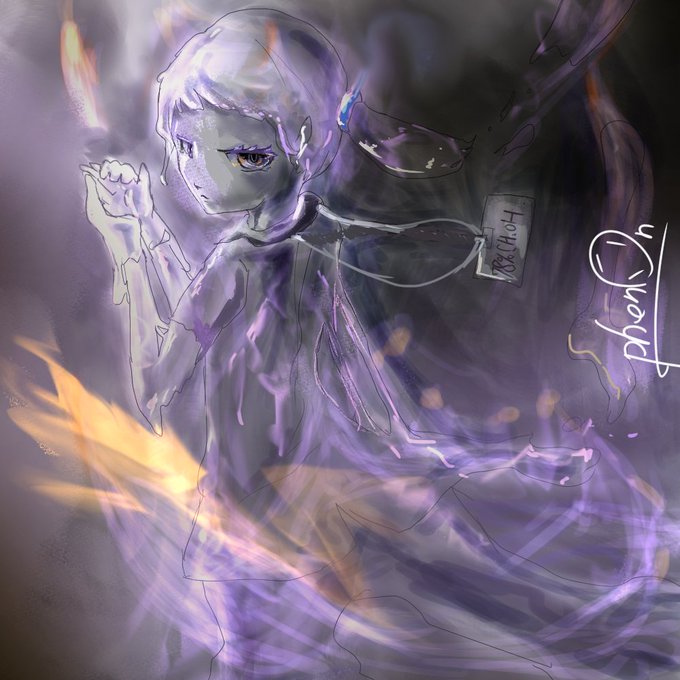 #スライム娘版深夜の真剣お絵描き60分一本勝負 遅刻参加です! お題【キーワード】燃えるスライム娘 この頃ではもうすっかり欠かせなくなった、アルコールジェルのスライム娘です。 潤いに満ちた見た目に反して、実は火をつけると燃えるのです。うっかり火気に近づけると、あなたも火傷しちゃうかも。