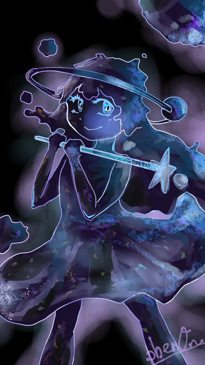 #スライム娘版深夜の真剣お絵描き60分一本勝負 お題:キーワード『宇宙』 地球にいる我々は、大きな大きな宇宙の形をまだ外から見たことがありません。 いつか、宇宙の外からわたしの顔を見つけてくれる知的生命体が現れてくれるのかな……とそわそわする宇宙スライム娘ちゃん(138億歳)なのでした。