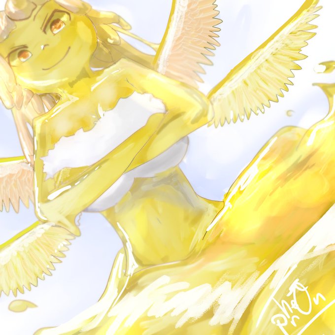 #スライム娘版深夜の真剣お絵描き60分一本勝負 お題が「黄色」ということでハチミツ?…… いえ、ミツロウちゃんを描きました。 ミツバチの巣の建材から生まれた彼女は、化粧品、医薬品、キャンドルや雑貨などで大活躍。 まさに才色兼備といったところでしょうか……?