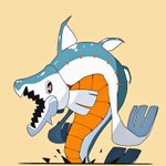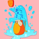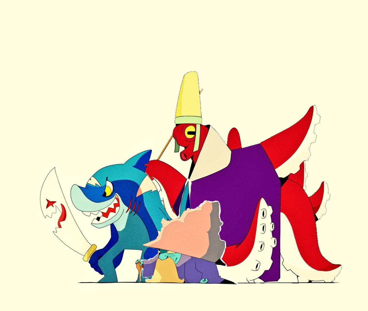 【藻類をモチーフにした人外】 ・ワカメダコ 足をうねらせ、わかめに擬態し近づいてきた獲物を捕食するタコ。1本だけ地面に貼りつく用の太い足を持つ。美味。 #人外版深夜の真剣お絵描き60分一本勝負