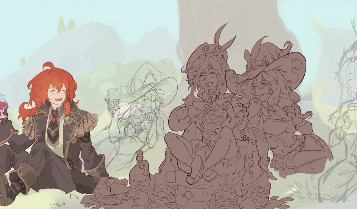 Счастливые алкаши, работа вторая. В процессе) Happy drinkers! Illustration #2! In progress #gensinimpact #genshinimpactfanart