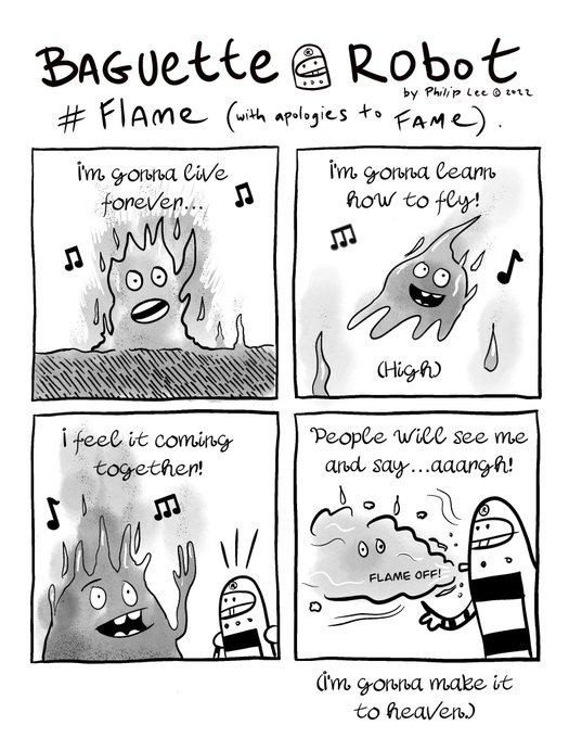 Baguette Robotober. Day 5. #flame #procreate #digifebrushes #comicstrip #robot #fun #inktober #inktober2022