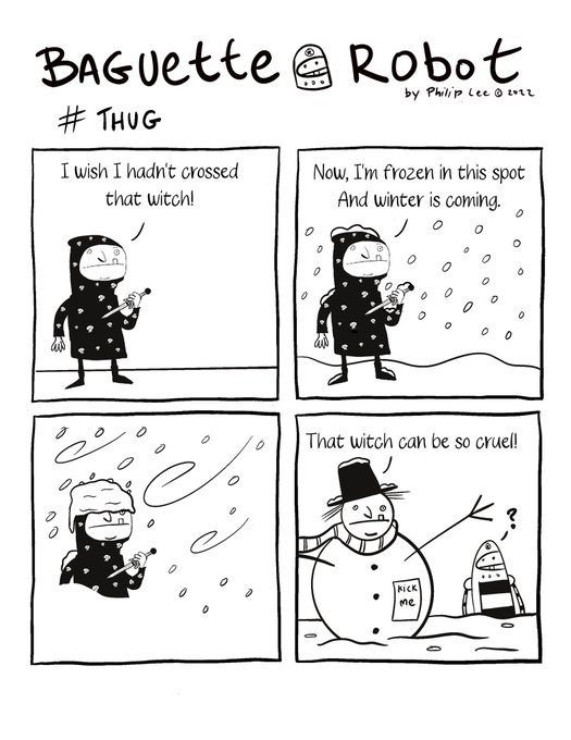 Baguette Robotober. Day 22 #comicstrip #inktober #inktober2022 #digilifebrushes #procreate #snowman