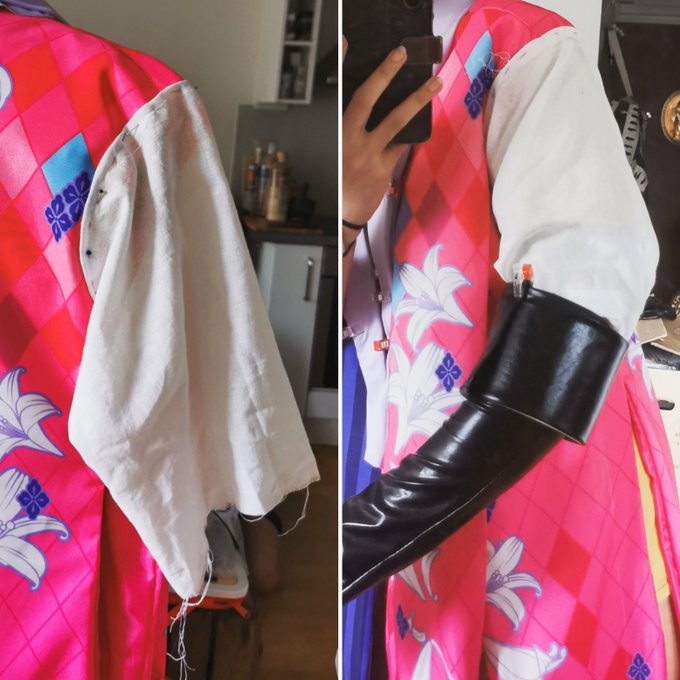 Sleeves time! My blazer reference was sleeveless hence it's time to improvise ✂️ #bettelcosplayWIP