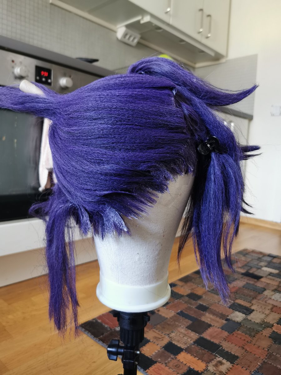 Phone cam was weird but the wig looks better in daylight. Here's before and after crimping! #hakkacosplayWIP