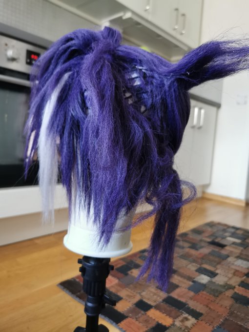 Front wig progress! My favorite part is the white streaks, which I took from Bettel's weft leftover heheheh 🔅🎩 #hakkacosplayWIP #PIHAKKASSO