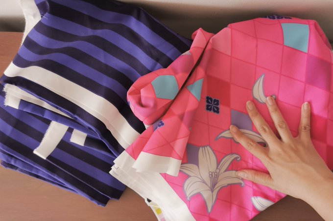 #Bettelion help! My fabric is violet shade which is more accurate to the design, but if it were taken by phone cam it turned blue - real case phenomenon that I wasn't aware of 😭 (Phone cam / IRL / Reference) Should I kept it or dyed it more purple ahhdhd #Bettelful