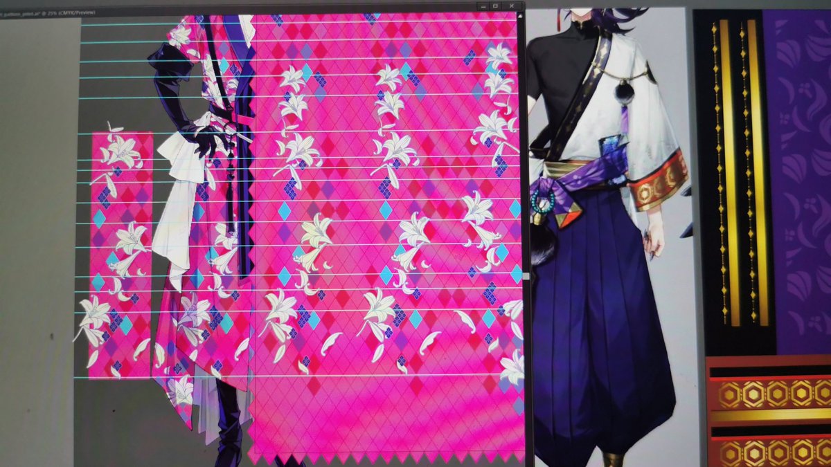 Worked on the pattern digitally in AI from scratch. I picked satin bridal for Hakka cause he's a shiny boi 🔅 #hakkacosplayWIP