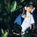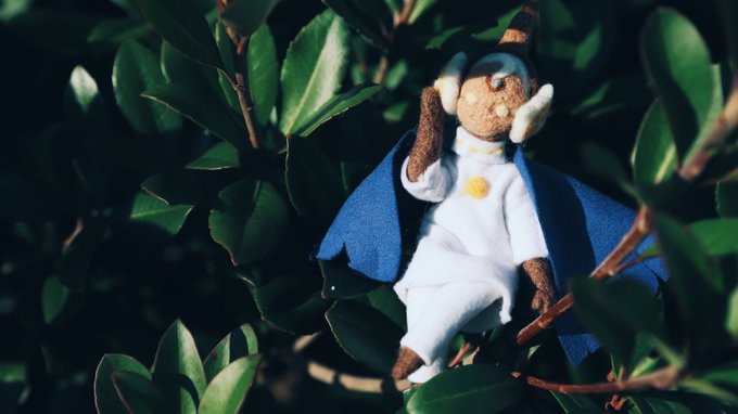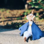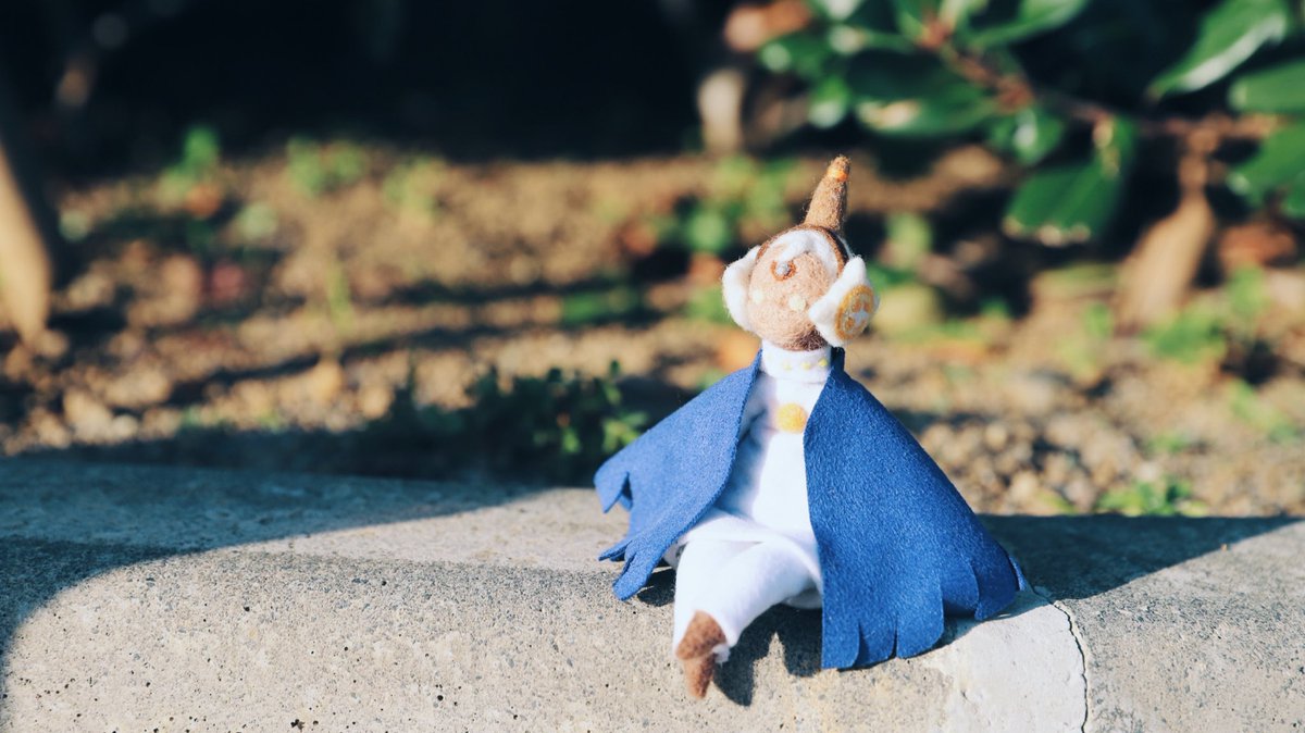 青マントの子がやってきました 後ろ姿をちょっとだけ披露 明日はお外で📸 #sky星を紡ぐ子どもたち #thatskygame #羊毛フェルト
