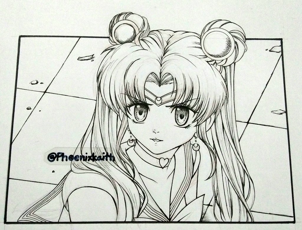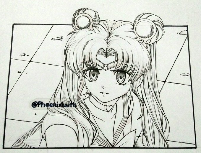 งานเข้าอีกแล้ว.😢 เอาเวอร์ชั้นเส้นปากกาไปก่อนนะ Moon Redraw. #sailormoonredraw #sailormoonredrawchallenge #lineart #drawing #AnimeArt #artwork #Artist #sketch