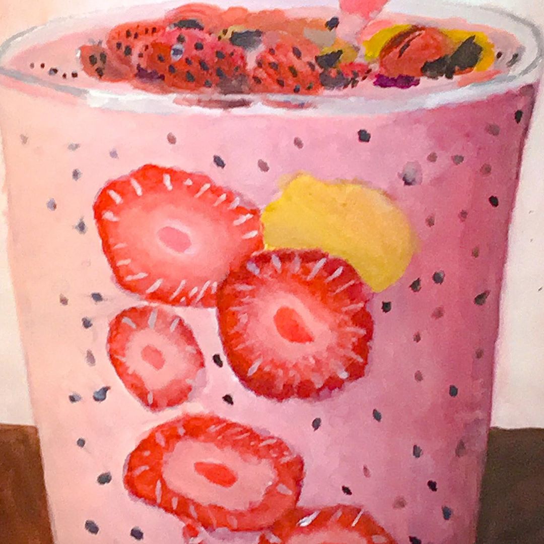 Peanut Butter & Strawberry Oat Drink (na mukhang breakfast smoothie) 🍓🥤[08/20/2020] Watercolor and gouache on sketch pad [Reference from/courtesy of thefitfabfoodie on IG] #artph #ArtistOnTwitter #ArtistsofSEA #mabuhayartists #smoothie #strawberry #artshare