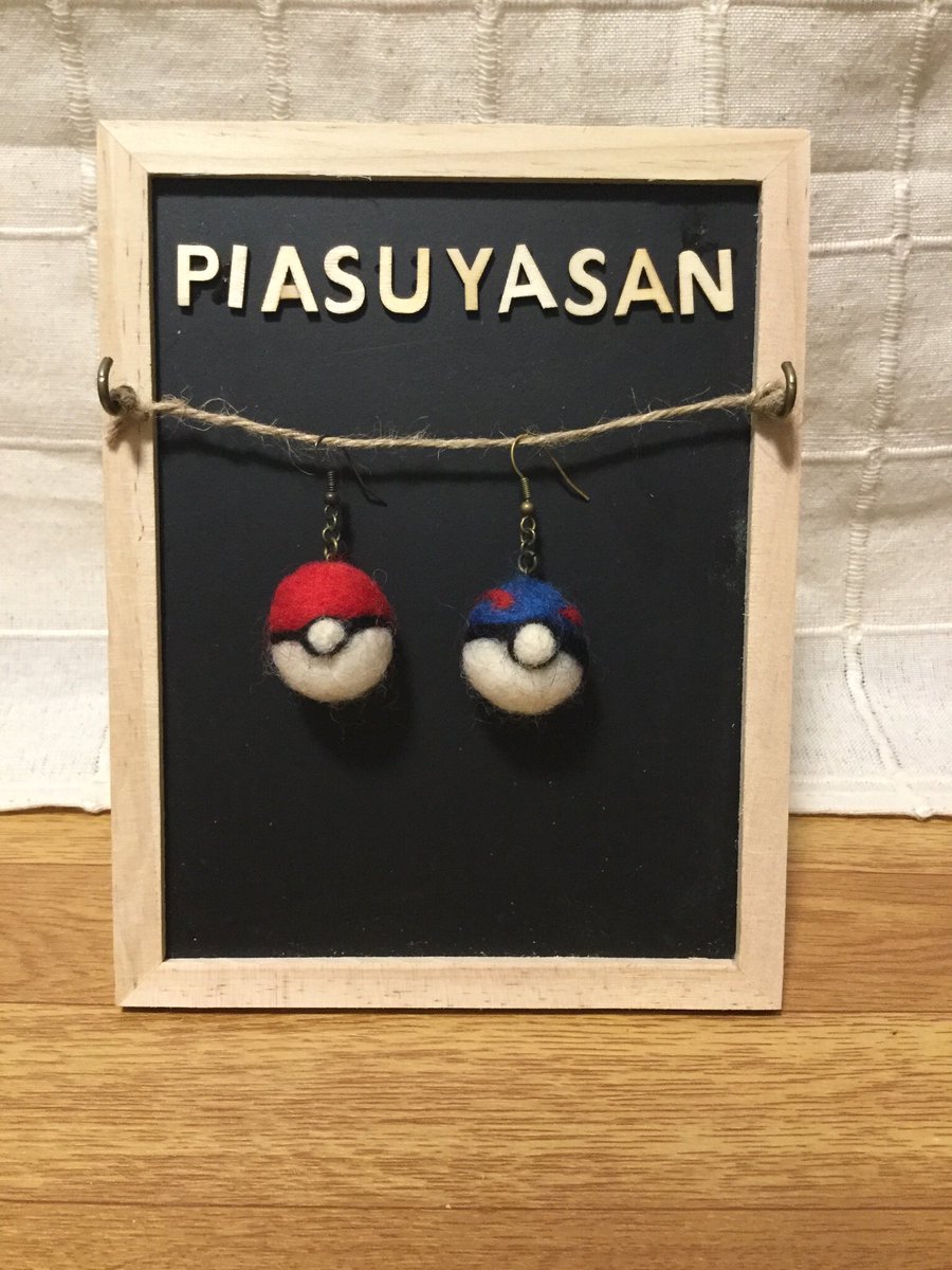 今日(2/5)はピカチュウの日という事なので、モンスターボールのピアスを置いておきますね(・∀・) #ピカチュウの日 #ポケモン #ピアス #ハンドメイド #羊毛フェルト