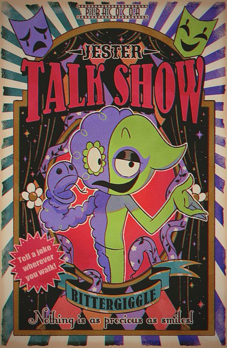 お喋り上手な道化師ビターギグルが送るトークショーの宣伝ポスター!🎭🎤 #gartenofbanban4 #gartenofbanbanfanart