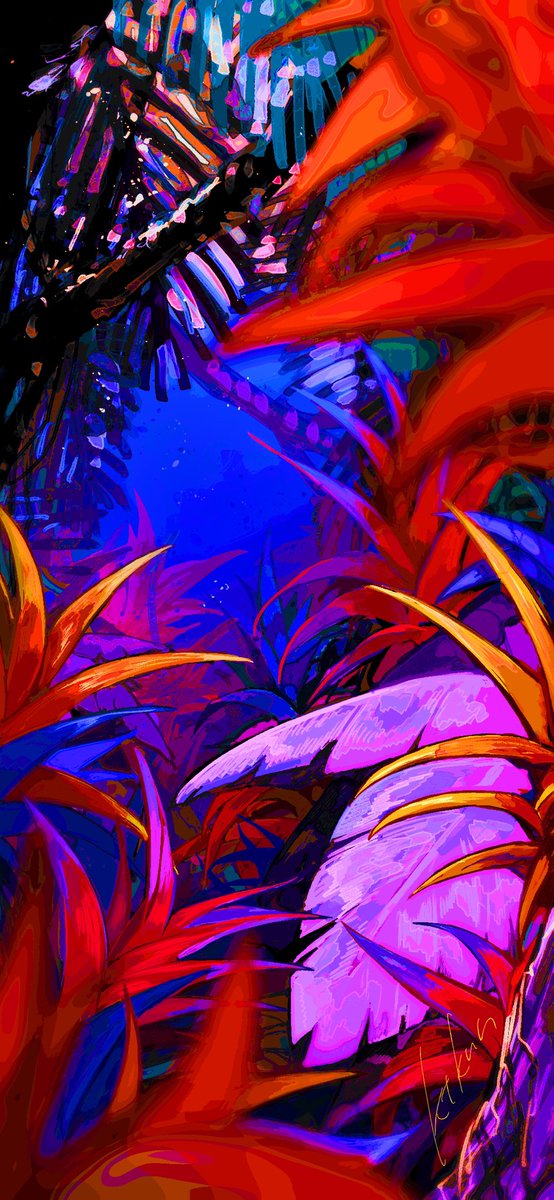 依頼いただいた熱帯雨林風の壁紙(iPhoneXサイズ)の色差分です🌺 こちらどなたでも私的利用可能です💁♂️ SNS掲載不可、個人利用のアイコン・壁紙使用可能 #イラスト #南国 #熱帯雨林 #壁紙 #風景