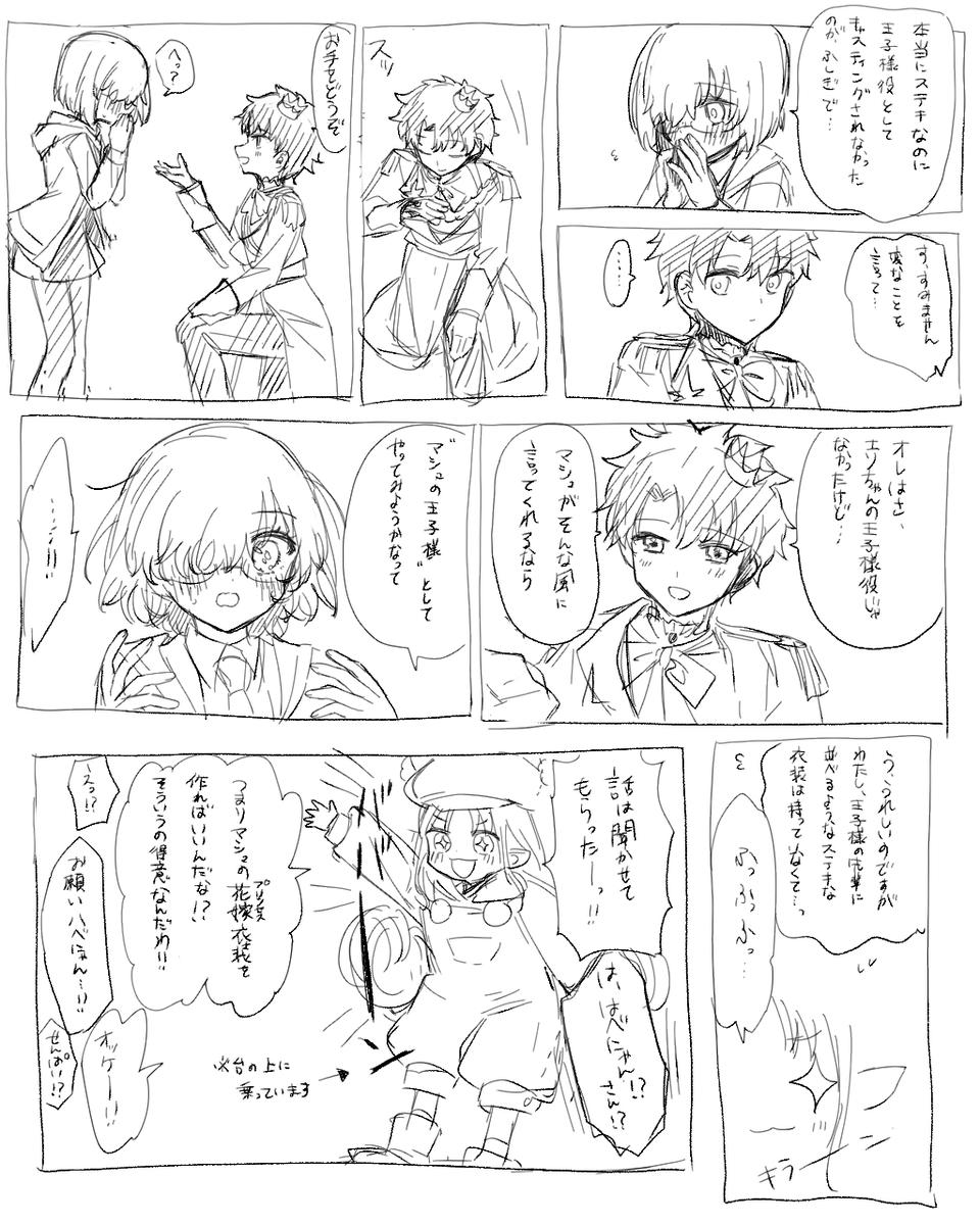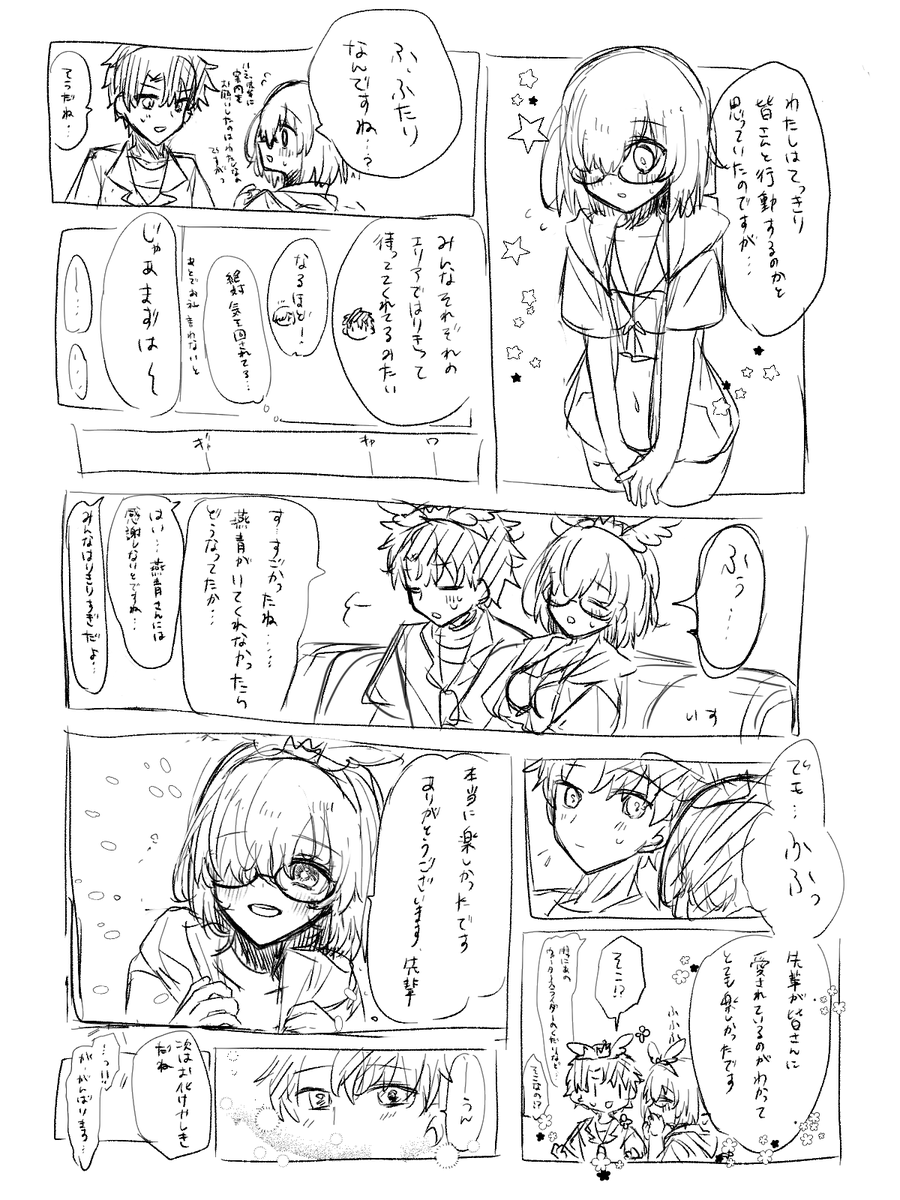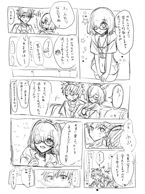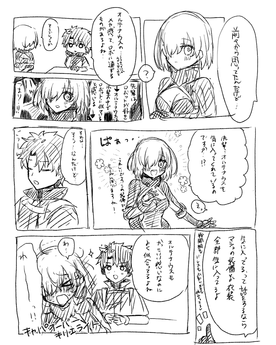 120 340 後輩に対する褒めが全力になりがちな先輩というらくがき (ぐだマシュ/男主盾) 22/09/05 22:45