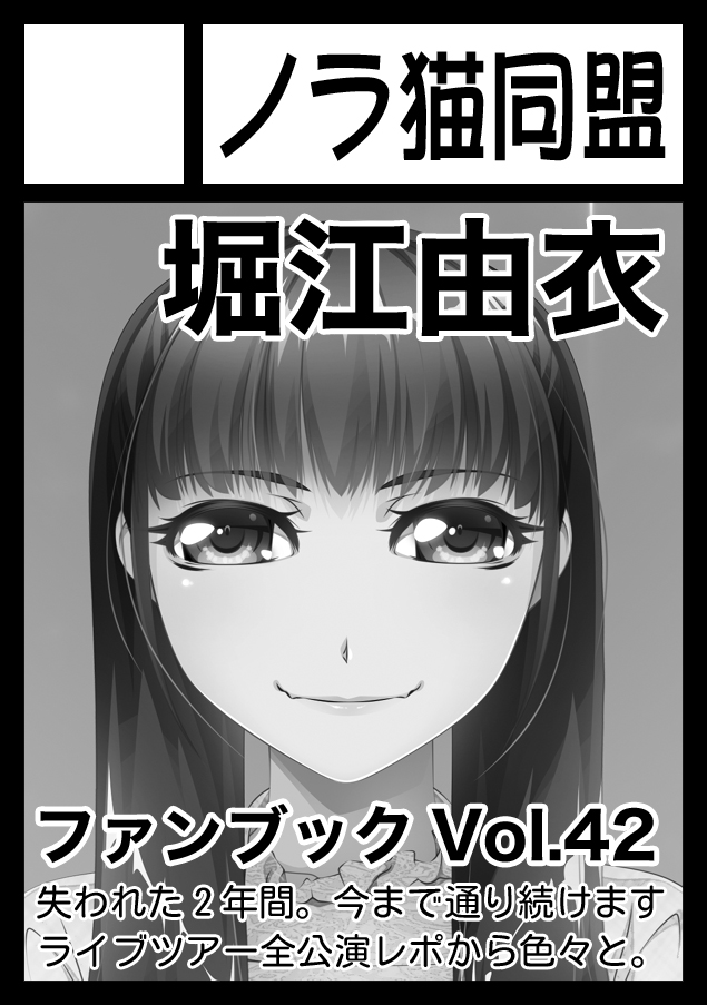 10 38 冬コミ新刊 「堀江由衣ファンブックVol42」(仮) の表紙があがって来ました。 本文も頑張るゾ。 #C99 #堀江由衣 21/12/03 01:48